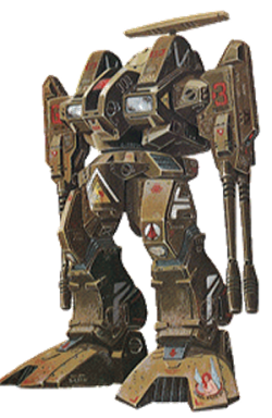 The Defender was based on the Destroid Tomahawk chassis. Its main armaments were two twin long-range 78mm anti-aircraft guns. It carried an extensive radar suite, which allowed the Defender to engage hostile forces at long ranges.