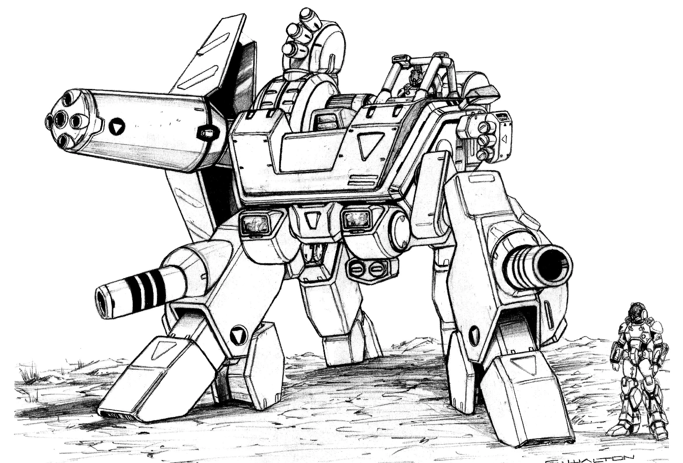 The FSB-03 Daniel was heavy fire support robot. The Daniel served with both the United Earth Defense Force (UEDF) Tactical Corps and with the United Earth Expeditionary Force (UEEF) Marine Corps and Tactical Corps. Though the Daniel had four legs, which did allow it to walk, however slowly, it was primarily a hover vehicle. The Daniel’s primary weapon was a heavy laser cannon. The Mk. I variant also had a pair of Ion cannons mounted on the front legs. Due to the limited field of fire associated with their placement, they were not included on follow-on versions.