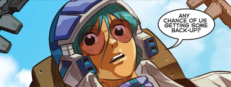 While checking out the fighters on the base, Max and Ben talked about what life would be like after the ship left. Max worried that since most of the economy on the island was dependent on the military that there would be great troubles after the ship left. Their conversation was interrupted by the SDF-1's main canons, which opened up and fired at the sky. Moments later, a red alert was announced as an unknown threat began attacking the aliens. All citizens were called to retreat to the shelters. Ben believed that the enemy were Anti-Unification Terrorists, but Max didn't agree, as the attacks were coming from above. (Love & War: Part 1)
