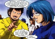 Max and Ben ran to the shelters as fast as they could, still in the way of enemy fire and explosions when the SDF-1 had taken off from the Island. The pair took cover next to a tank, as an item from above crashed into the ground next to them. Max, highly curious, took a peek at the crater that had been created by the object, which held a large Lion mecha. As the pair looked on in awe at the giant beast, a series of helicopters surrounded the area. A man stepped out of one of them, exclaiming himself to be Lieutenant Colonel Thomas Riley Edwards, and took them into custody as witnesses of a site of military importance. (Robotech/Voltron: 1)