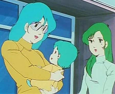 A baby Dana in Max's arms. (Macross Saga: Reconstruction Blues)