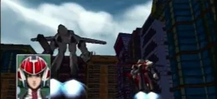 Rick was able to exit his mecha by rising his chair outside of the top, past the head. There he came in contact with Lynn Minmei and her cousin, Jason, who were both watching from a near window. He attempted to move the Veritech simply by guessing, which caused him to crash into more of the buildings near where he landed, including Minmei's room.