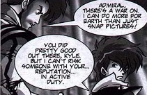 That night, Rick was late to a date that he had with the Admiral; his girlfriend Lisa Hayes. As she chastised him for being late again, he presented her a small gift-wrapped box. Although at first, she was upset that he was trying to give her a gift to excuse himself, she opened it and soon realized what it was. Rick lowered himself to one knee and proposed to her.