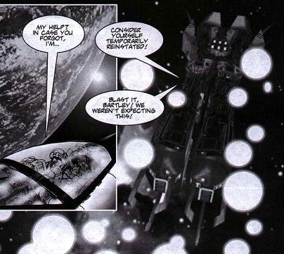 Both vessels were aided by the Icarus, which was sent to check on the SDF-3 after contact was lost with the vessel. They found it, but were attacked by an unknown enemy, in the first shots of the Fourth Robotech War. Due to the loss of the SDF-3's fold drive, the Icarus planned to jump to hyperspace close to the SDF-3, engulfing it in its hyperspace bubble. However, the SDF-3 was rammed by an Haydonite warship, preventing it from jumping with the Icarus and sending it back towards the black hole.