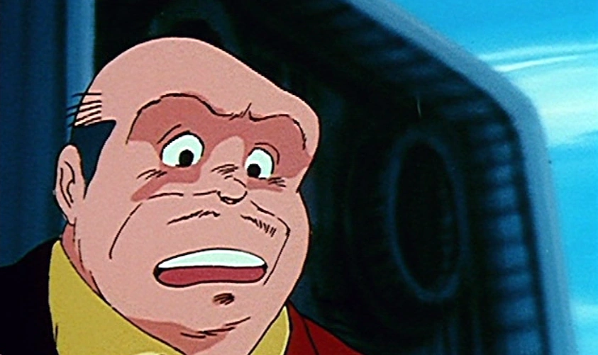 On the launch day of the SDF-1, he was standing on a sidewalk on Macross City, Macross Island, with his friend. A limousine rushed past them with Captain Gloval and Senator Russo inside. He said the "big-shots" were making a grand entrance whereas his friend commented on Captain Gloval's unhappy appearance. (Macross Saga: "Boobytrap")