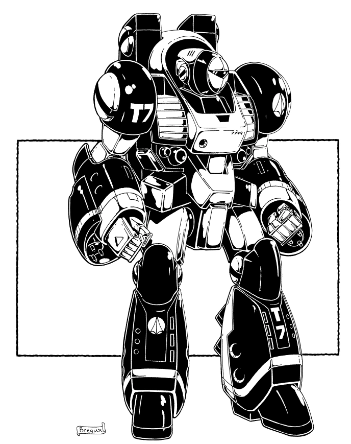 It was armed with missile launchers, 2 chest weapons clusters with lasers and particle beam guns, and wrist mounted triple barrel Gun pods.